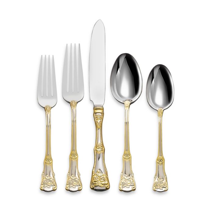 Royal Albert Old Country Roses 65 Piece 22k Gold Accented Stainless Steel Flatware Set Shophq