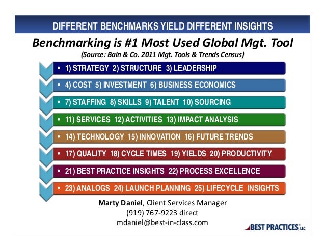When it comes to benchmarking tools the most important ones are. In addition annual surveys from bain companys 5 indicate similar. Benchmarking is a term used to describe a rule or guideline by which others can be measured or judged.