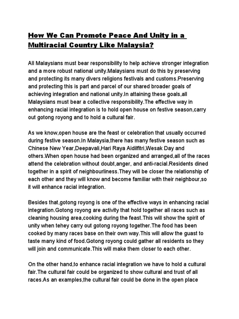 How We Can Promote Peace And Unity In A Multiracial Country Like Malaysia Malaysia