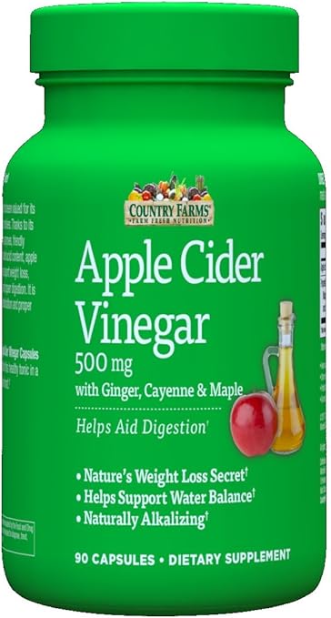 Country farms apple cider vinegar capsules 500 mg 90 ct. 05312019 apple cider vinegar has numerous proteins enzymes friendly bacteria and high acetic acid content that helps promote weight loss satiety and proper digestion. Country farms apple cider vinegar capsules provide the benefits of this healthy tonic in a convenient capsule format. Of apple cider vinegar powder plus 100 mg.