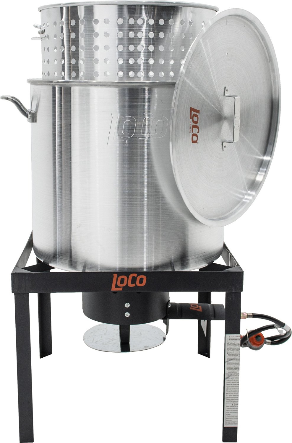 Product title loco low country boiler fryer kit 60 quart average rating. Aluminum pot with strainer. Crafted from rugged aluminum the 60 quart pot evenly heats the water and can hold up to 35 pounds of seafood and ingredients.